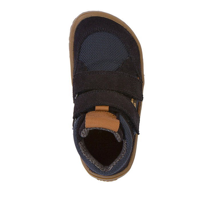 Confeccionado en cuero repelente al agua y detalles en textil, menbrana intermedia y forro de abrigo textil. Suela de goma flexible, plana (cero drop), con relieve (grip) y fina. Horma amplia con amplitud para dedos (barefoot) y a la vez buena proporción con el ajuste de un amplio abanico de talones. Plantilla extraíble de microfibra.