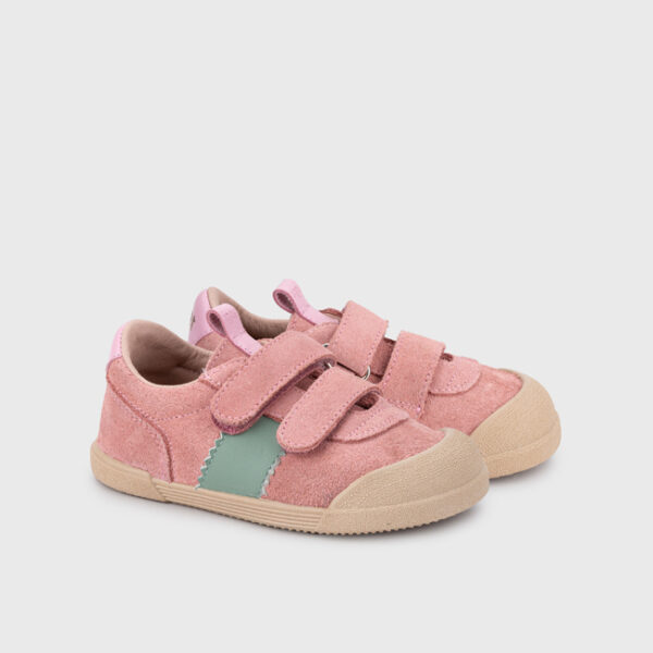 Bamba de piel, con forro textil. Se ajusta al pie con doble velcro en empeine. Suela con dibujo para aportar la tracción necesaria y puntera protegida.