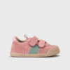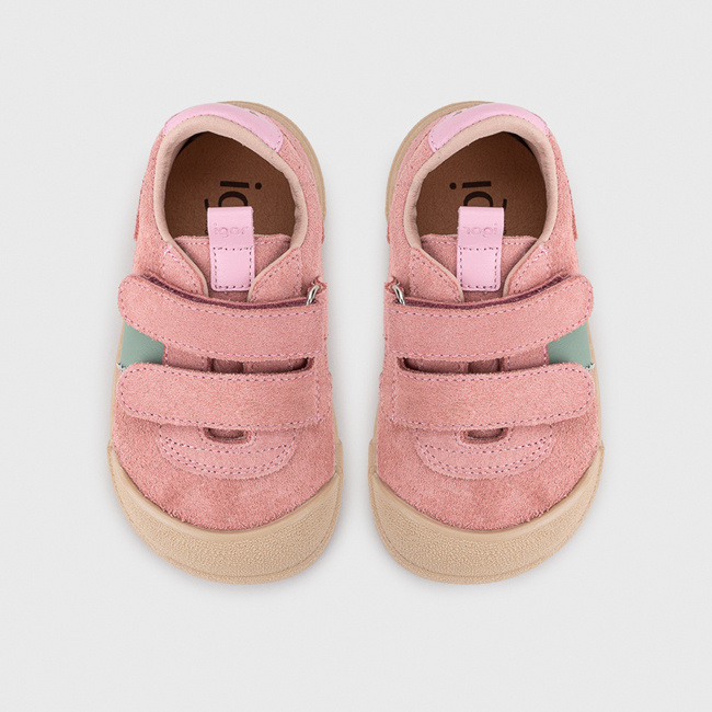 De suela plana y flexible. Con horma amplia en dedos. Plantilla extraíble.
