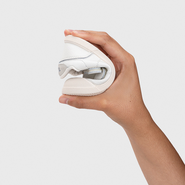 De suela plana y flexible. Con horma amplia en dedos. Plantilla extraible.