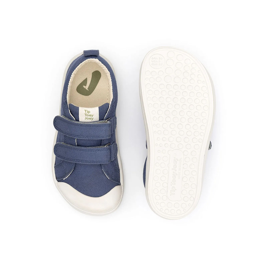 Composición vegana: empeine en lona 100% algodón, forro de sarga de franela de algodón, plantilla extraíble de EVA de origen vegetal (derivada de la caña de azúcar), suela de caucho natural flexible y antideslizante.